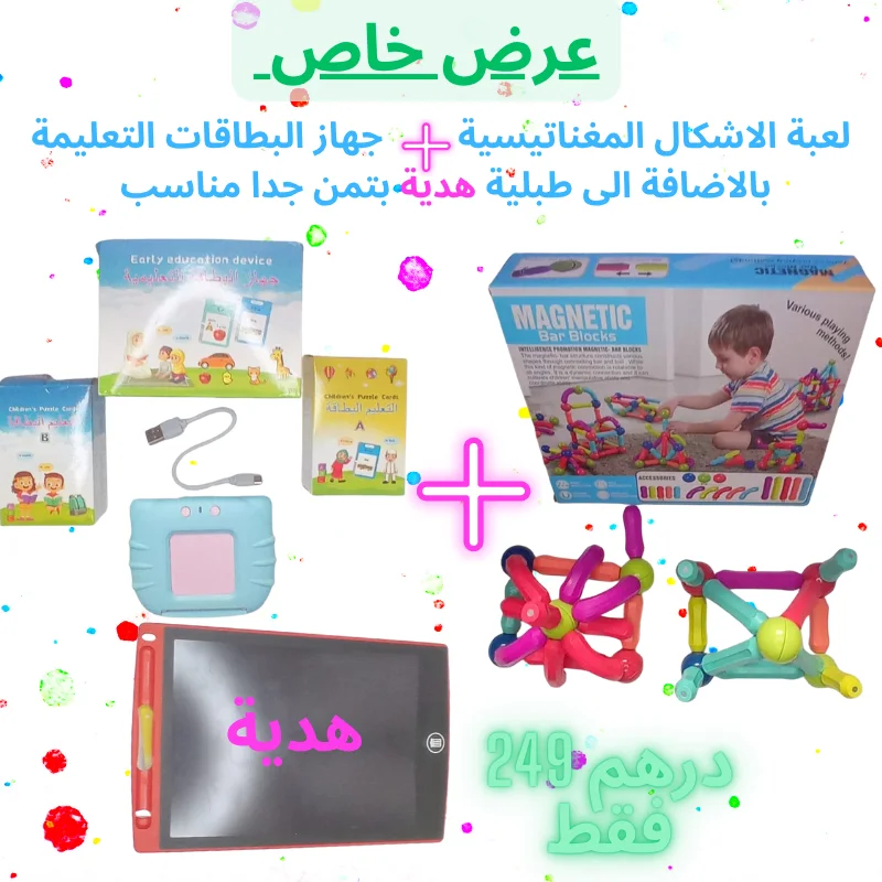 لعبة الاشكال المغناتيسية + جهاز البطاقات التعليمة بالاضافة الى طبلية هدية بتمن جدا مناسب